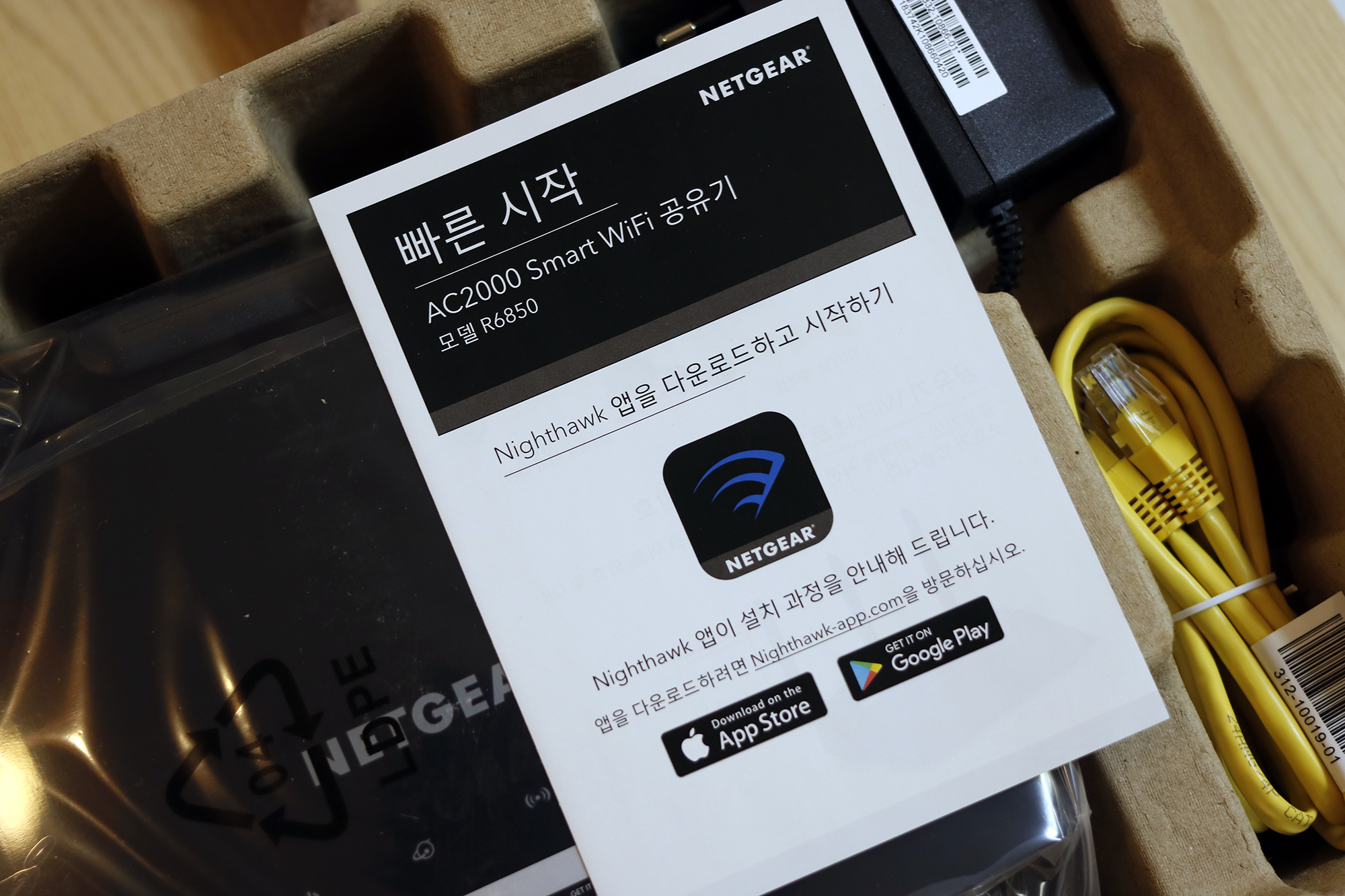패키지 개봉하면서부터 보여지는 것은 나이트호크 앱을 이용해서 넷기어 R6850 인터넷 공유기를 손쉽게 설정 할 수 있다는 점이다.