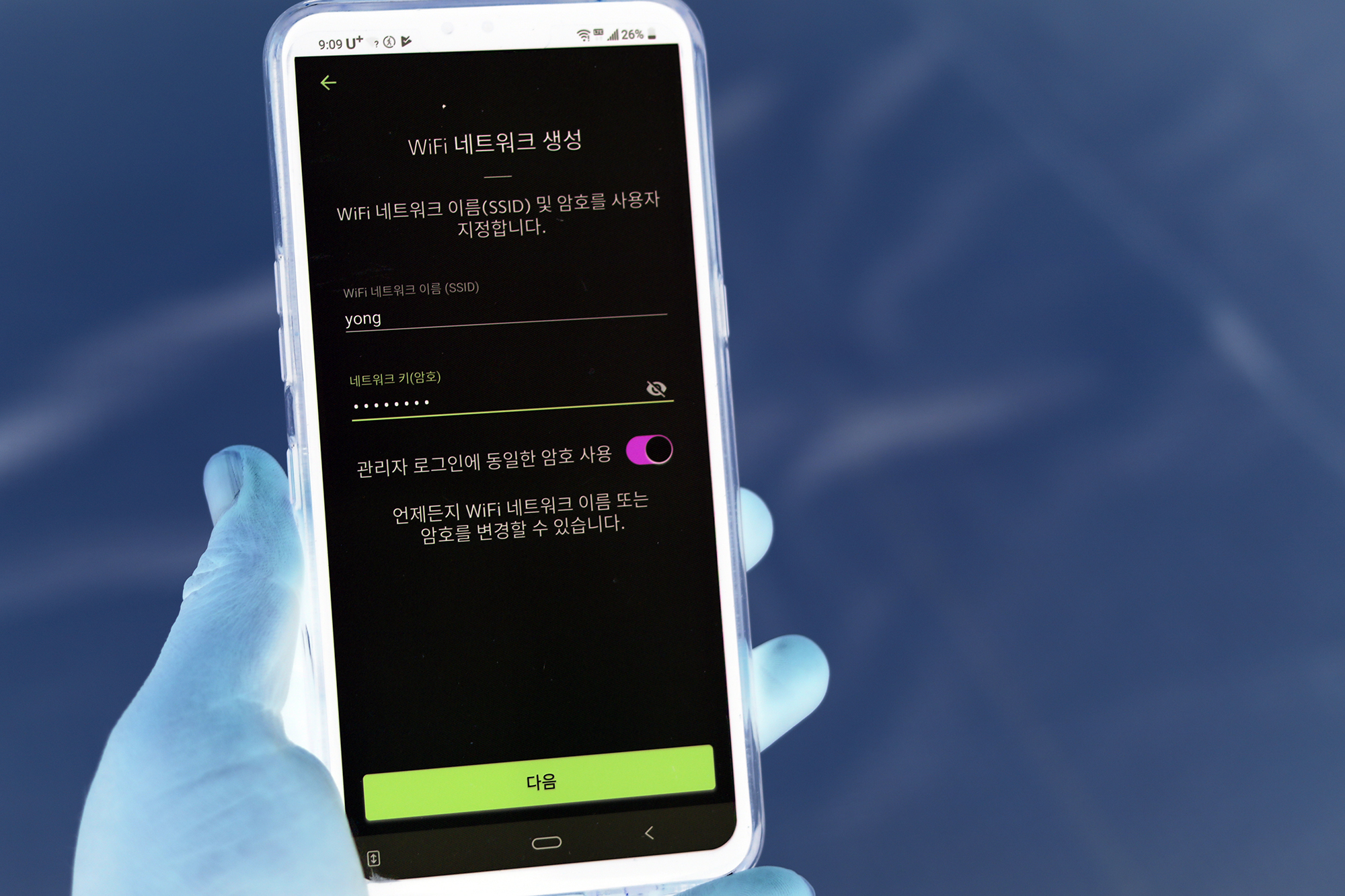 여기서 팁이라고 한다면 이전에 사용하던 네트웍 이름과 공유기 암호를 그대로 설정하면, 이전에 연결된 모든 디바이스들이 별도의 설정 과정 필요 없이 자연스럽게 공유기와 연결이 되는 구조이다. 아주 간단하죠