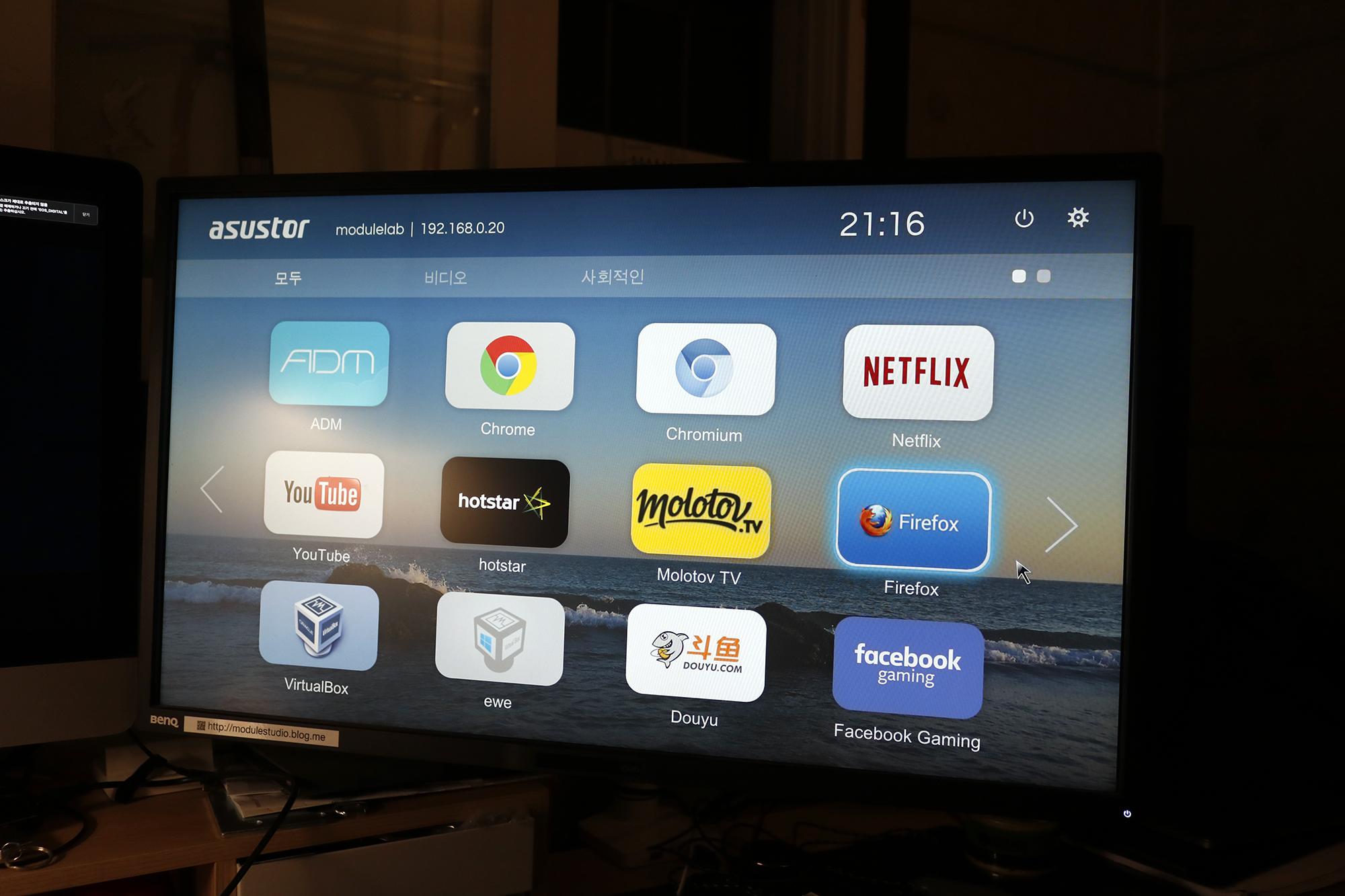 참고로 모듈랩이라고 하는 바로 옆에 이는 플렉스 미디어 서버는 ASUSTOR 앱 스토어에서 다운로드 받아서 설치하면 자동으로 인식 하게 됩니다. 물론 앱을 실행해서 인식해야할 폴더를 지정해주는것은 기본 입니다.